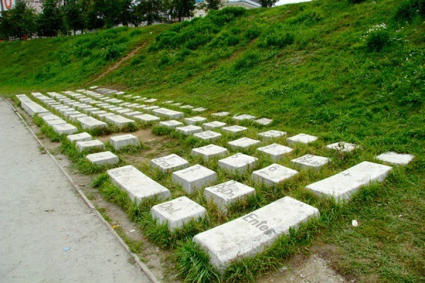 В Екатеринбурге, пожалуй, таким арт-объектом является памятник клавиатуре, который расположился в Историческом сквере. Скульптура появилась здесь в 2005 году и относится к направлению лэнд-арт. Клавиатура создавалась в качестве спецпроекта к фестивалю «Длинные истории Екатеринбурга».